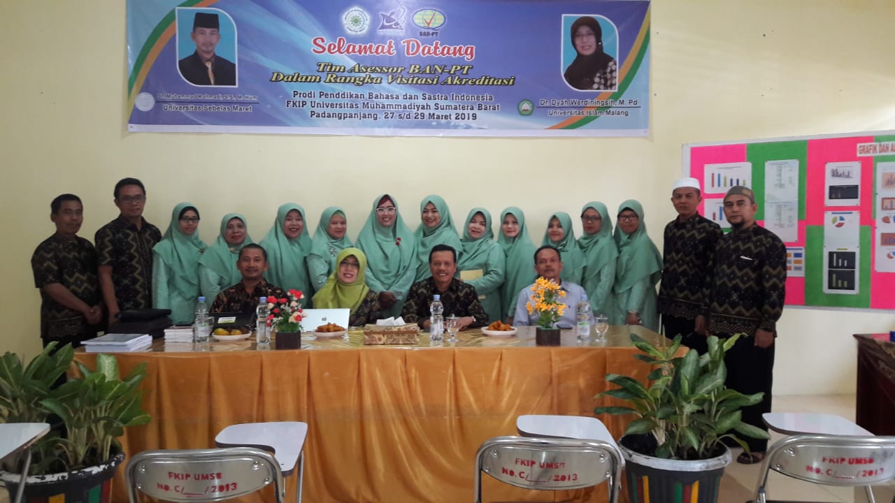 Fakultas Keguruan dan Ilmu Pendidikan Universitas Muhammadiyah Sumatera Barat, Strata satu (S.1) Prodi Pendidikan Bahasa dan Sastra Indonesia sudah selesai melaksanakan Visitasi Lapangan pada hari Kamis, 28 Maret 2019. dalam hal ini BAN-PT menugaskan 2 asesor Lapangan yakni: Dr. MuhammadRohmadi, S.S., M. Hum (Universitassebelas maret) dan Dr. Dyah Wardiningsih, M. Pd ( Universitas Islam Malang). Alhamdulillah berjalan dengan lancar. Mudah-mudahan Prodi Pendidikan Bahasa dan Sastra Indonesia mendapat nilai yang terbaik. sebelumnya Prodi PBSI akreditasi B
